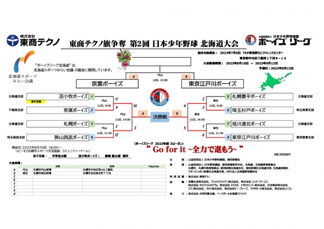 8月10日~8月12日(予備日13日)北海道支部内の各会場において 東商テクノ旗争奪 第2回日本少年野球北海道大会 が開催されます。