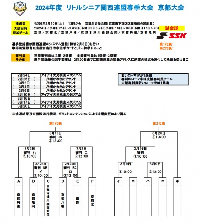 > 春季関西大会京都予選 組み合わせ決定