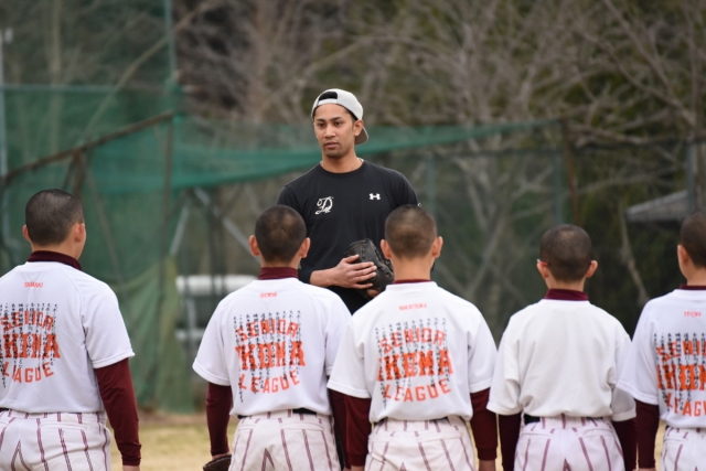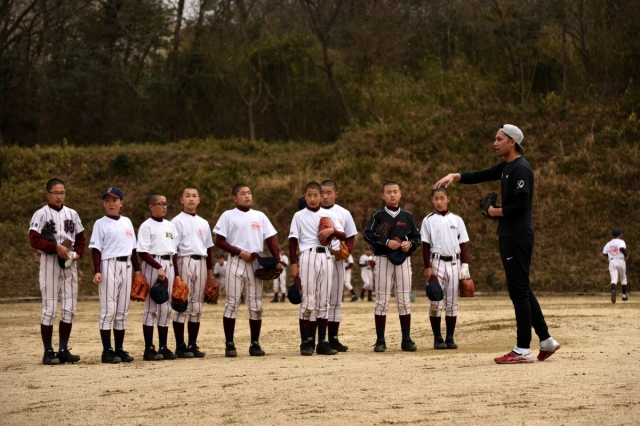 春季大会で敗れたチームでしたが、グランドに戻り生駒シニア2期生で元プロ野球選手であるダース・ローマシュ匡さんにお越しいただき、野球教室を開催していただきました。