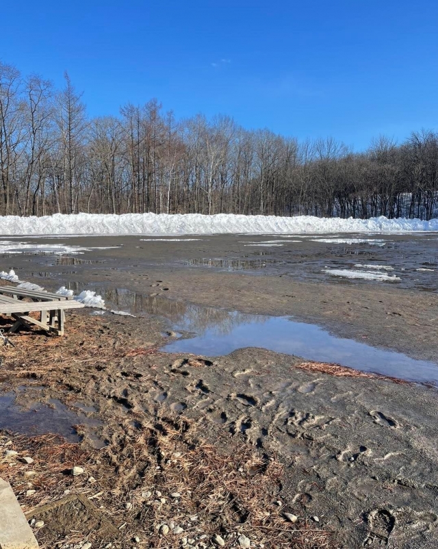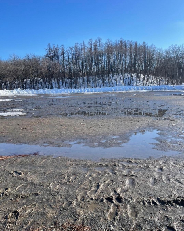 先日、蒔いていただいた融雪剤の効果で少しずつ土が見えて来ました!