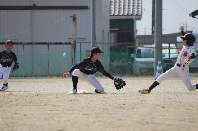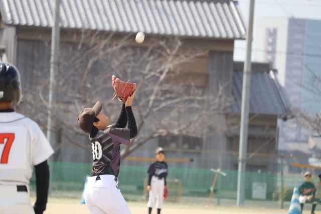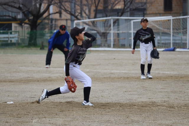 1試合目は昨年覇者の庄野シリウス。4回までは先発ジンが要所を締め2-1とリードしていましたが、5回にコウダイ、ライトの継投もむなしく8点を取られ3-9と敗戦。