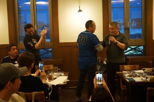 開幕に向けて、東月寒レオンズも決起集会を行い、今シーズンの背番号が手渡されました。