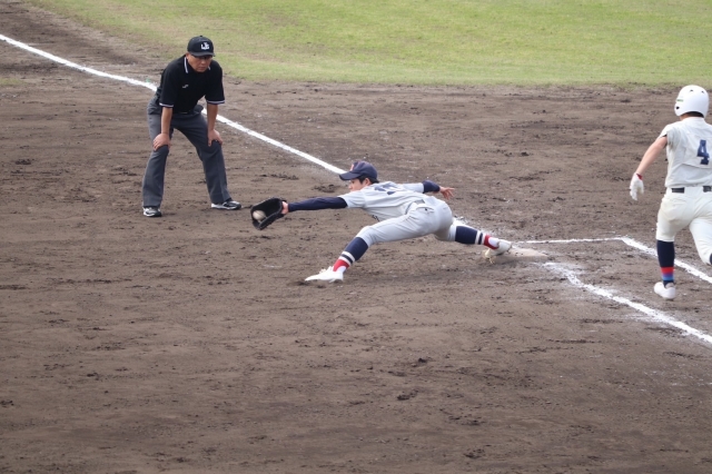 初回から相手投手の好投に打線が噛み合わない中、守備のミスから先制点を許してしまいました。しかし、追いかける終盤6回に連打でチャンスをつくり、適時打で同点に追いつくと、裏の回に再びリードを許してしまうも、7回表に逆転を決め、見事、初戦に勝利することができました。