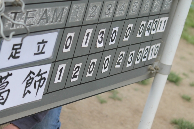 序盤から打撃に火がつき得点を重ね4点リードで迎えた最終回。このまま勝利…と思いきや、ミスがミスを呼び同点に…1アウト満塁からはじまる延長戦(タイブレーク)に突入。足立は3点、葛飾は…2点。結果