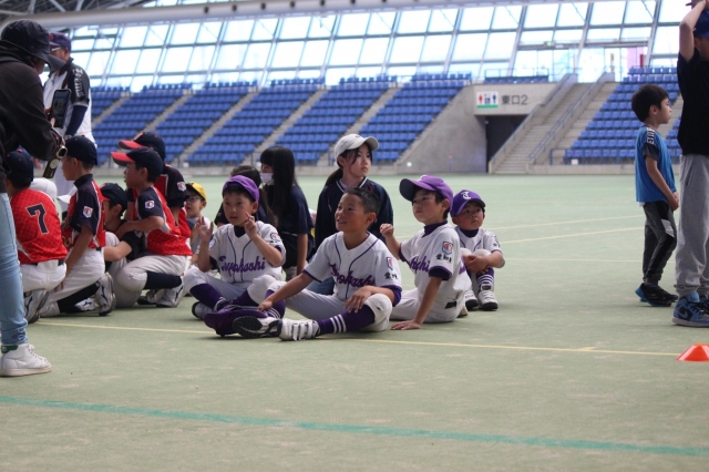 4年生以下の選手たちは、開会式のあとで開催されたティーボール大会に参加しました。