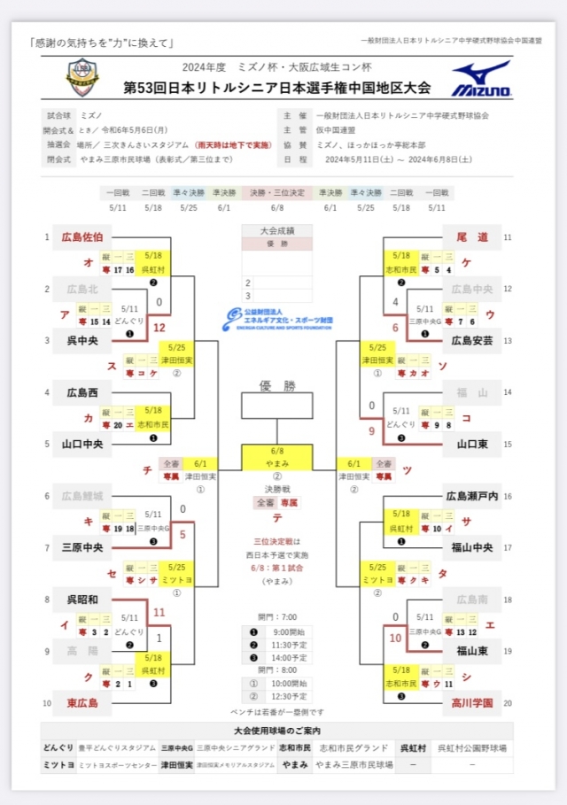 5月12日 日本選手権中国地区大会 準々決勝日程変更