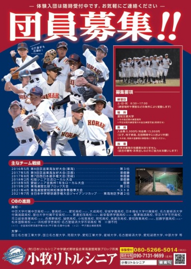 など、小牧リトルシニアに少しでも興味ありましたら