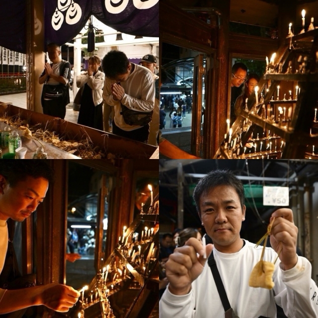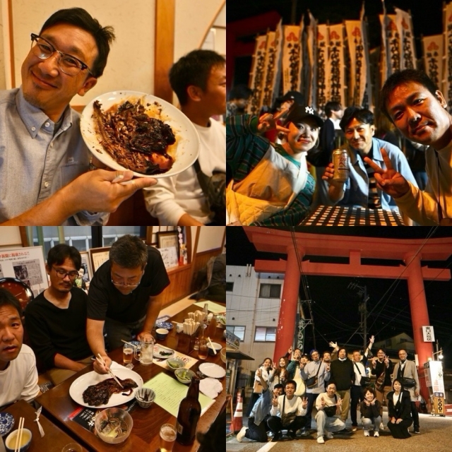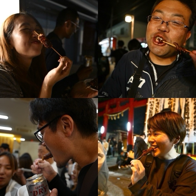 神社に到着すると、串カツや、ナマズの蒲焼きを食べてみんなニッコリ!