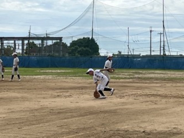 通常練習組は、昨日からの雨の為、グランドの水とり作業からのスタートとなりましたが、