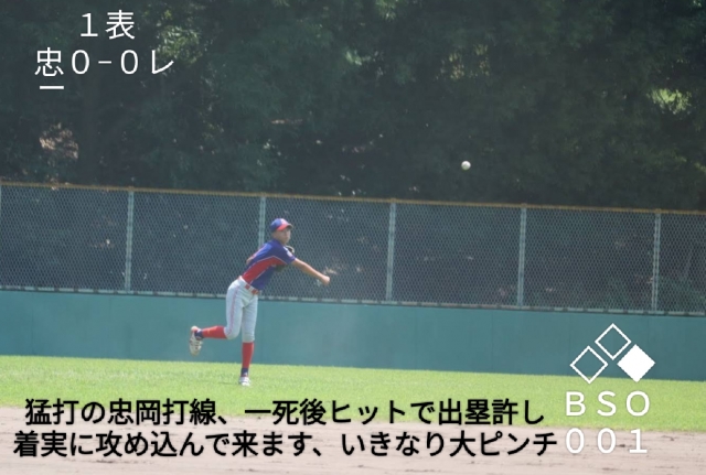 その裏忠岡さん一死後ヒットと四球、