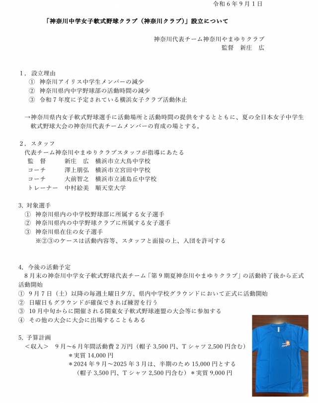 2024年9月スタート!神奈川中学女子軟式野球クラブ(神奈川クラブ)設立!