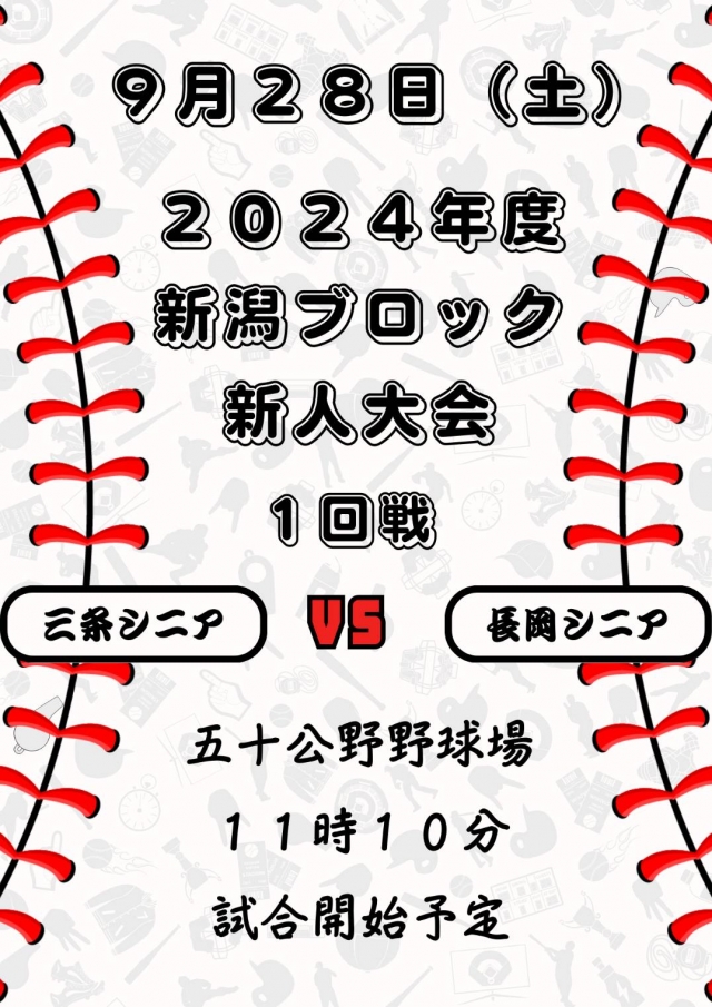 長岡シニアは五十公野野球場にて三条シニアさんと対戦となります。