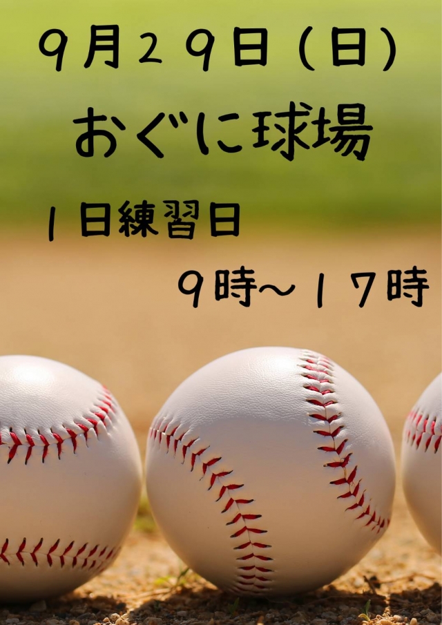 29日はおぐに野球場で1日練習を予定しております。