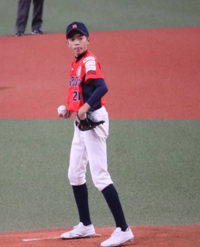 少年野球交流戦ではチームから蜂谷君が出場。