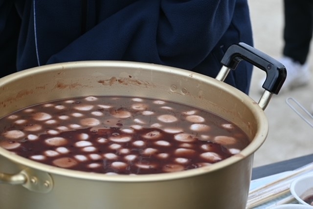 マラソン大会では、指導者・保護者が見守る中全力で走り切りました。その後、母たちが用意してくれたぜんざいを美味しくいただいて、グラウンド開きを行いました。