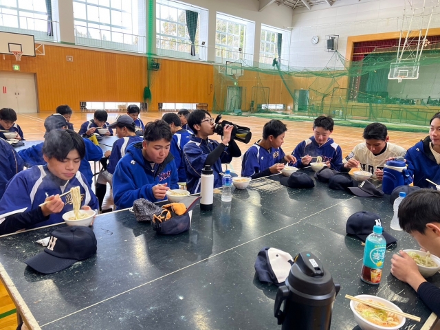 参拝後は初練習を行い、必勝うどんを食べ