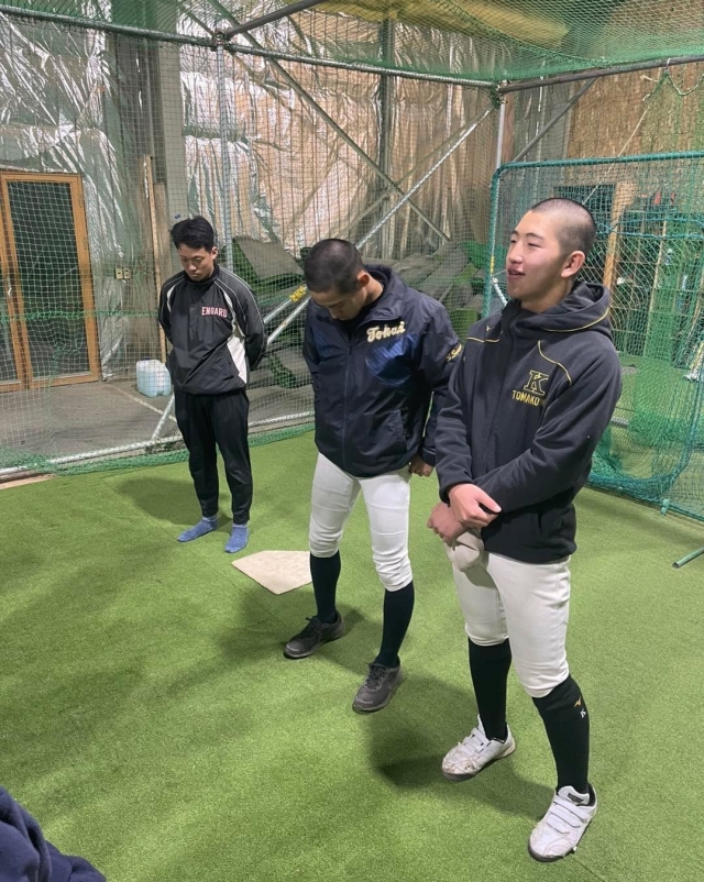> 今日はOBの3人が来てくれました