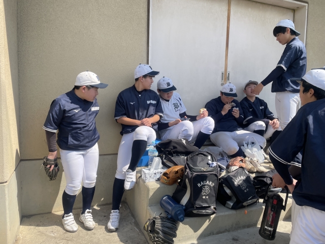 やっと春らしい暖かさの中、長野工業高校グラウンドで練習です。