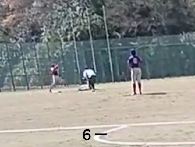 枚方セカンドくん懸命に差し出すグラブを弾いて外野へ転々
