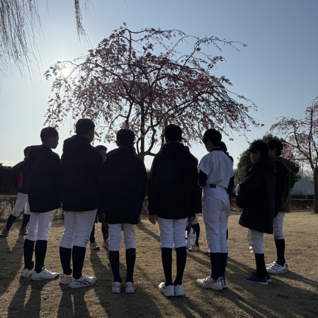 桜満開の球場で練習!