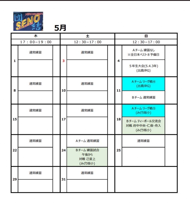 5月は通常練習の日もたくさんあるので、