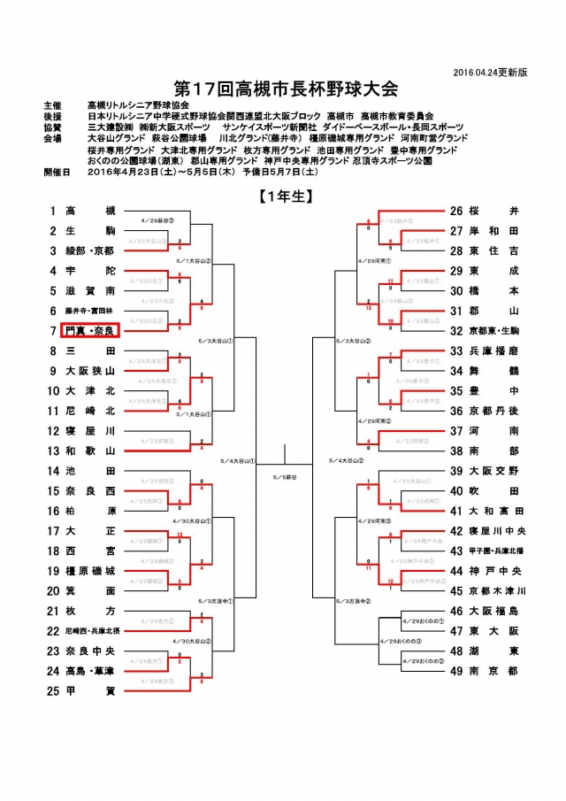 > 第17回 高槻市長杯一年生大会 ベスト16