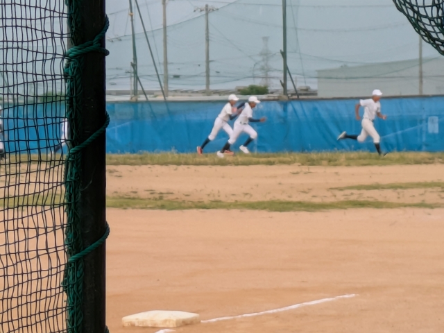 朝の整備を終え、二か所バッティングやノック等の練習メニューをこなしました。