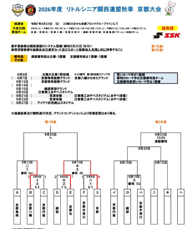 > 関西連盟秋季大会京都予選 組み合わせ&途中経過