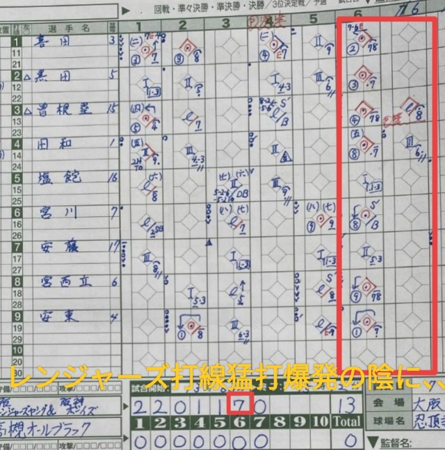 6表曽根塁左中間を深々と破る三塁打から始まる打者一巡の猛攻は見事でした