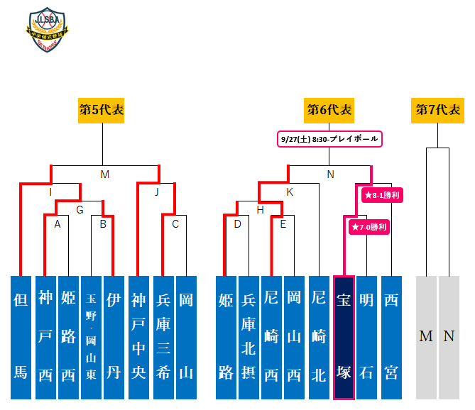 9/27(土)第1試合8:30から、神姫バスキッピースタジアム(城山公園野球場)にて開催されます。