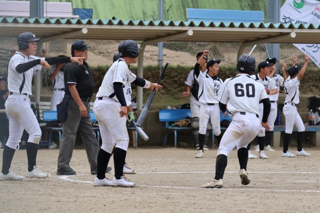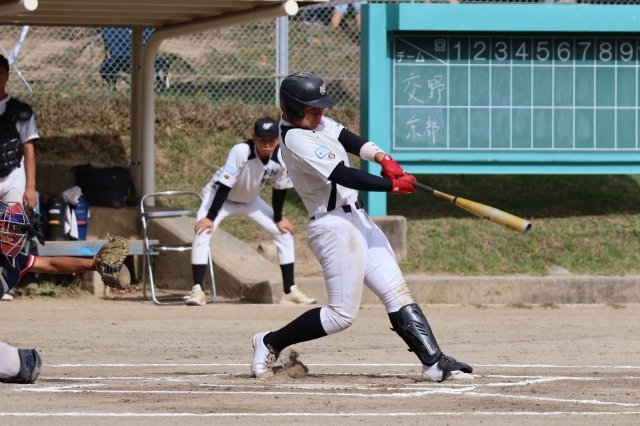 ダブルヘッダーで迎えた、なにわ大会3回戦。初回から0が並ぶ展開です。4回に4点を許してしまい、苦しい展開になりましたが、6回に同点に追い付きます。最終回も互いに点が入らず、延長タイブレークへ…。まず翔輝が1点を入れ勝ち越します。その裏を抑えれば…というところでしたが、押し出しで勝ち越し点を許してしまい、ゲームセット。なにわ大会は敗退となりました。来週はいよいよ最後の大会、東関西秋季大会です。やり残したことがないよう、大会を迎えたいですね。