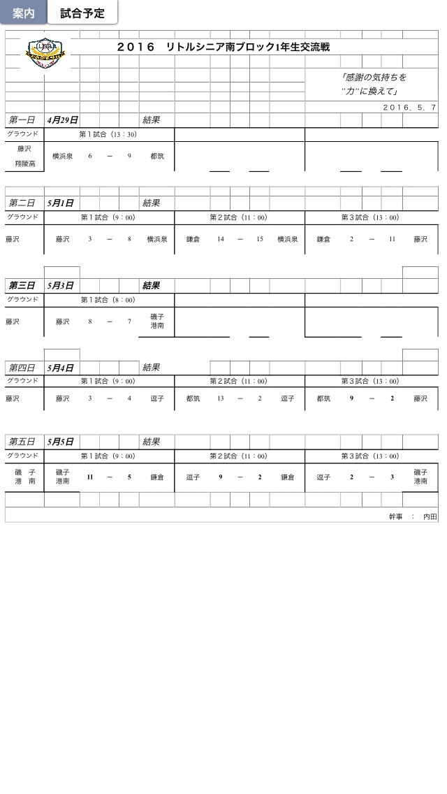 ゴールデンウィークに南ブロック1年生交流戦を行いました。