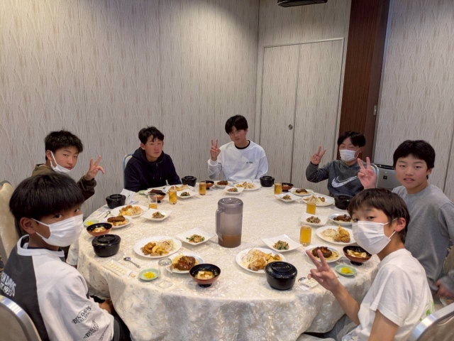 試合終了後は宿泊先での美味しい食事と選手全員での大部屋での睡眠。