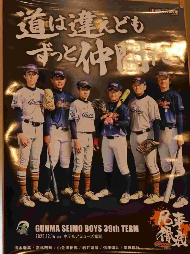 高校では、仲間からライバルになりますが「道は違えどもずっと仲間だ。」を胸に刻み、群馬西毛ボーイズで学んだ事を活かして高校野球で発揮出来る事を願います。