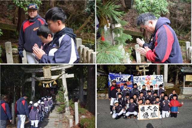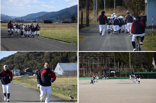 練習始めは、毎年恒例となっている一言神社での必勝祈願からスタートしました。肌寒い気候の中、グランドから一言神社までの約3キロのランニングから。年末・年始で鈍った体には堪えます。