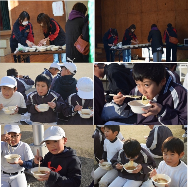 練習後は、お母さんが用意してくれた、雑煮を皆で食べました。温かい雑煮は、寒い体に染み渡ります。感謝。