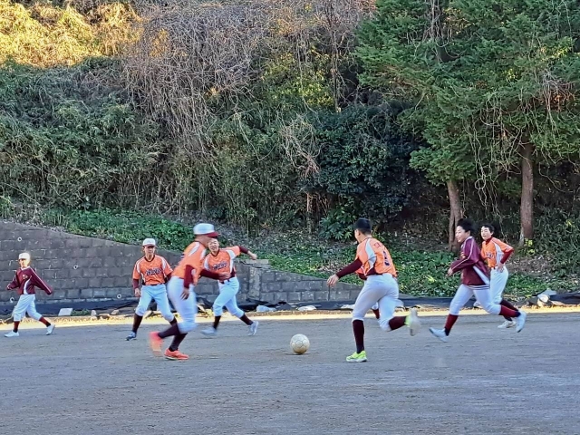 坂道ダッシュ、中距離走、蹴球(あくまでも体力づくりの一環です)といろんなメニューで体力強化!