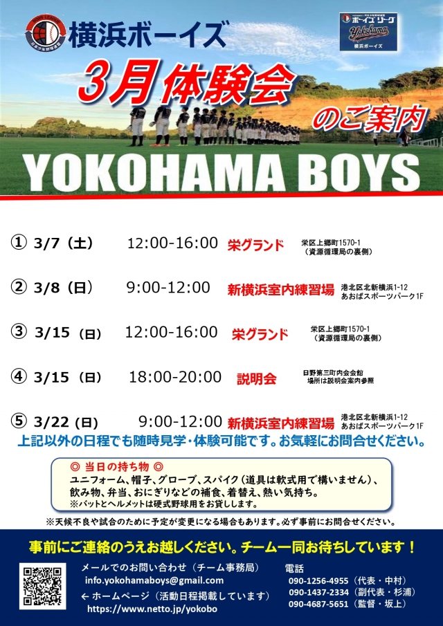 新着情報 > ⚾️2026年3月 体験会・説明会のお知らせ⚾️
