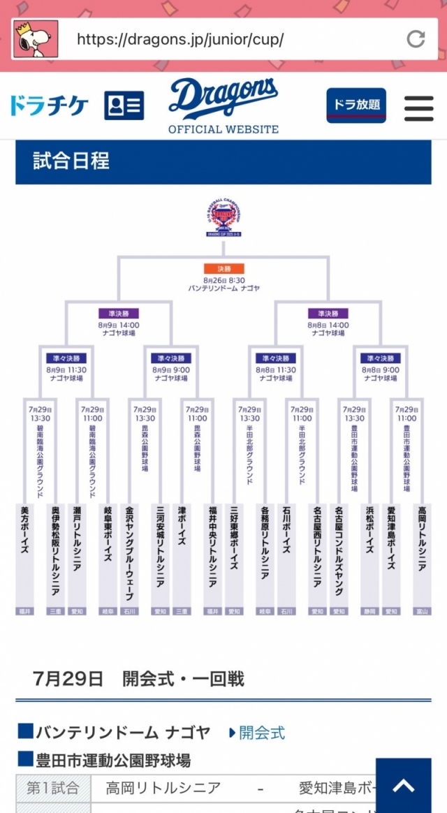 次戦は8/8 9:00ナゴヤ球場です。