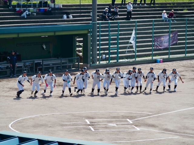京都大会が始まりました。初戦の相手は、3月の強化合宿で対戦したチームです。1か月が過ぎて、成長した姿を見せられるか!? 2回に2連続四球や相手の失策で3点を先制し、試合の流れは翔輝へ…。その後も追加点を加え、最終回には一気に7点を入れ、2桁得点でゲームセット!初戦を白星で飾りました。京都大会は明日も続くため、投手陣も小刻みに4人の継投で、試合の流れを作ることができました。明日も試合は続き、勝てばダブルヘッダーです。今日のように投打のいいバランスを期待しましょう!