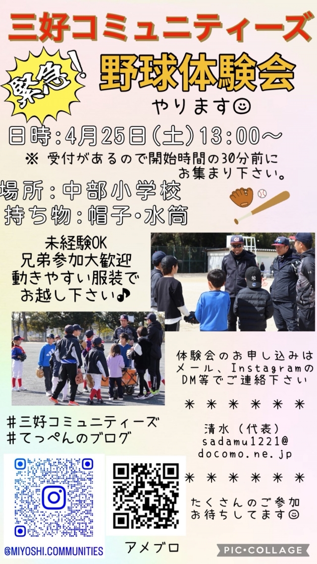 緊急野球体験会を開催します!