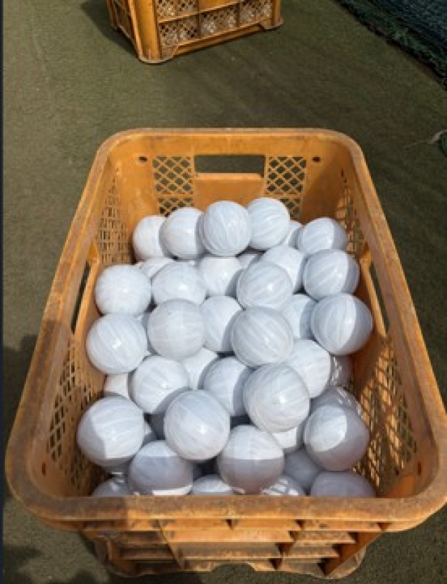 選手たちのために、白いテープで一球一球丁寧に巻いてくれました。