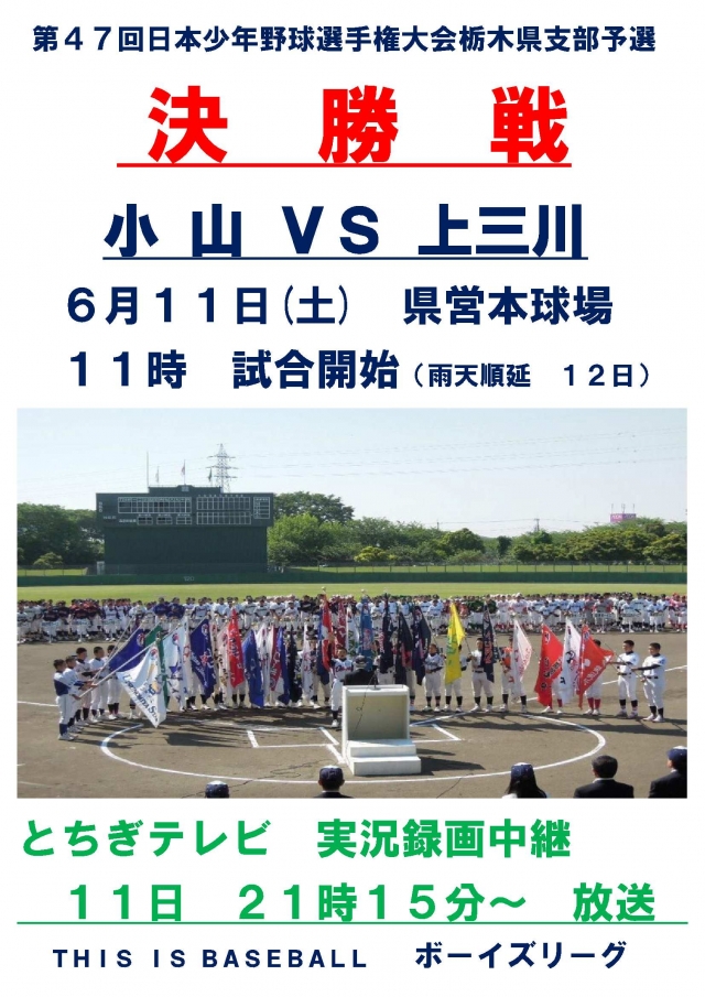 6月4日、5日両日に行われました、第47回選手権大会栃木県支部予選に見事勝利し、決勝戦に駒を進めました。今大会は打撃が炸裂し、齋藤真央選手が2本のホームラン、宇津木帝凱選手が1本のホームラン、その他の選手も打撃絶好調でした。6月11日土曜日の決勝戦へ向けて、一致団結で頑張りましょう!応援よろしくお願いいたします!