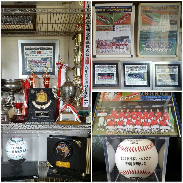 指導者室に飾ってあるトロフィーや写真