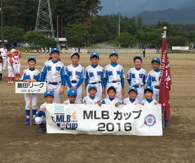6月19日(日)安曇野市で『AIG PresentsMLBCUP2016リトルリーグ信越連盟大会』が行われ、飯田リーグは5年生以下13名で挑みましたが惜しくも須坂リーグに6対10で負けてしまいました。