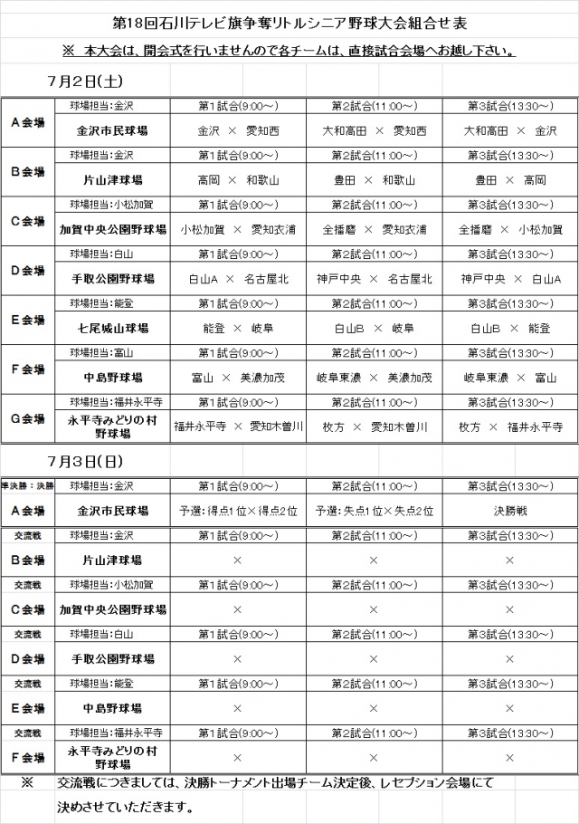 第18回石川テレビ旗争奪リトルシニア野球大会組合せ