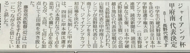 第10回全国中学野球選手権大会(ジャイアンツカップ)の北信越B地区の決定戦が行われました。