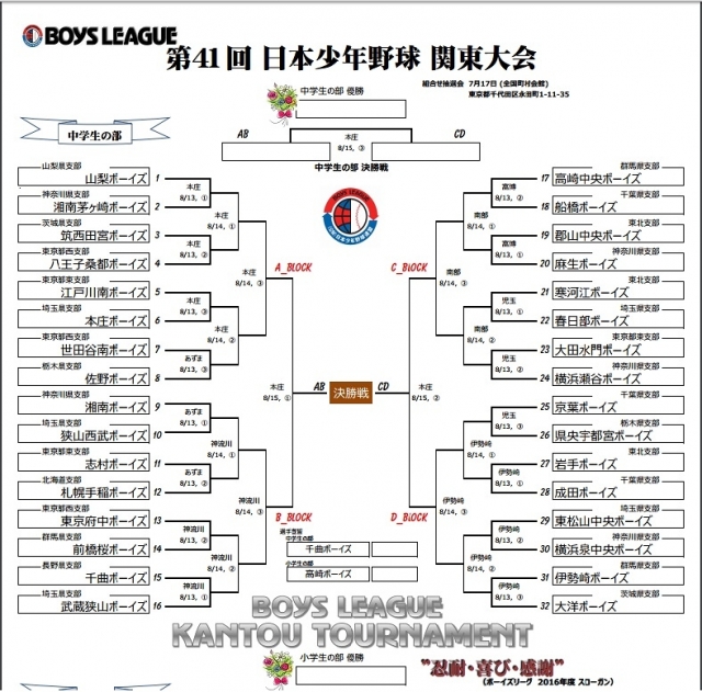 第41回 日本少年野球関東大会が8月13日、14日、15日に開催されます