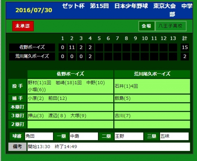 > ゼット杯 第15回 日本少年野球 東京大会 一回戦 勝利!