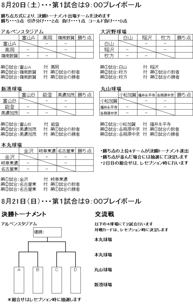 第21回富山テレビ杯争奪リトルシニア野球大会の組合せ